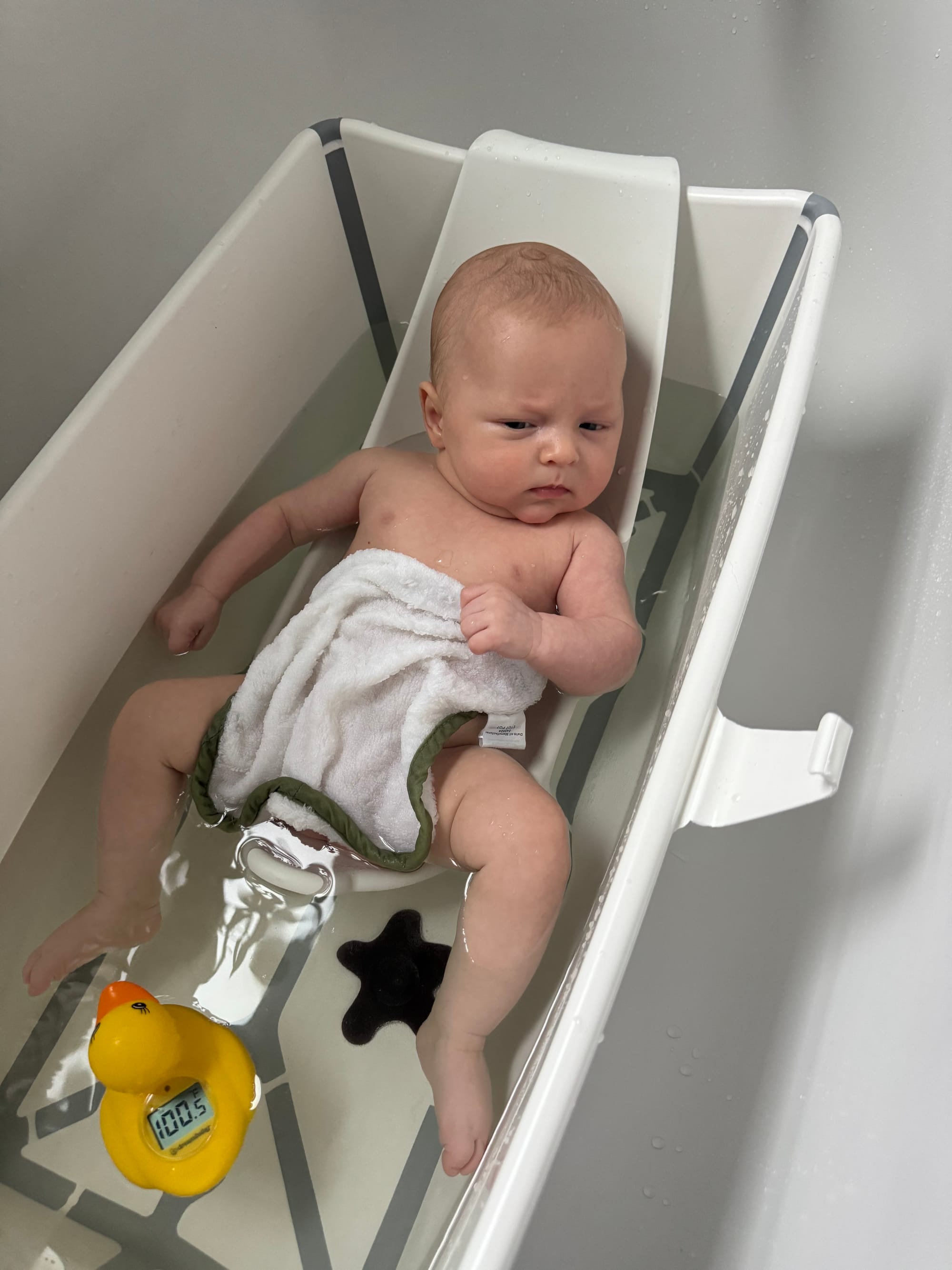 Tiny Tub: We’re still using this little tub (get the one with the newborn insert) that goes in the tub (or in the shower/on your counter if you don’t have a tub). We've long ditched the newborn insert, and he’s nearly entirely too big for it now, but it’s nice not to have to fill up an entire tub.