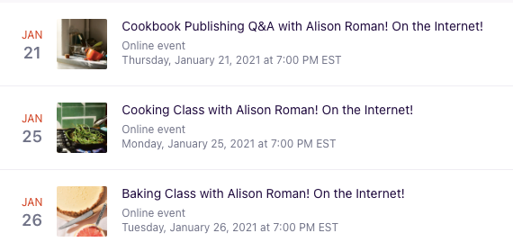 Do you want to cook with me, on the internet? Or perhaps ask me questions about the world of cookbook publishing? Or maybe you’d like to pay $100 just to troll me (someone did that!!)! Coming up in January, three new classes for your infotainment pleasure. There’s one on cookbook publishing, one for cooking, and, historically the most chaotic, one for baking. We have fun!