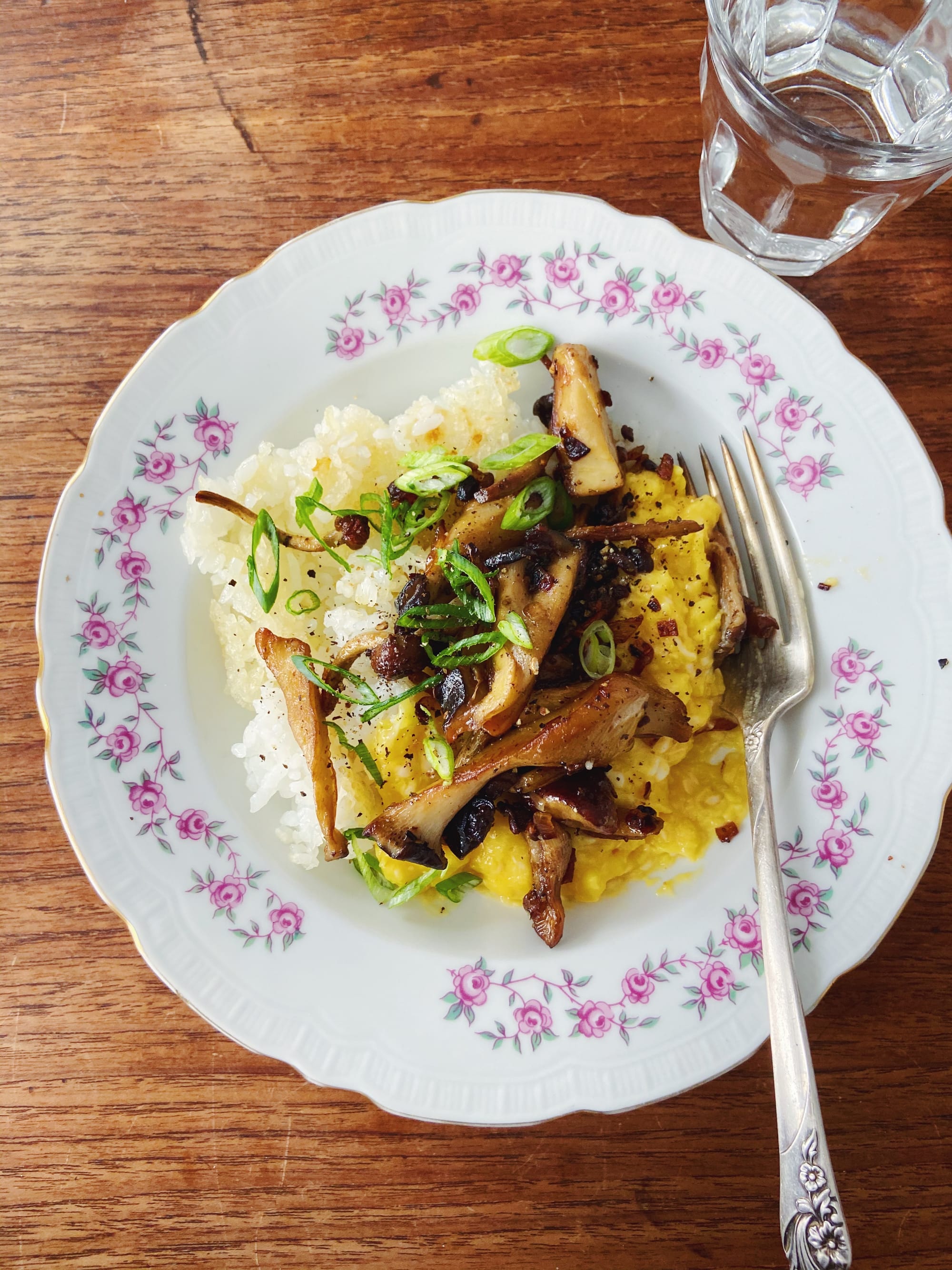 Lauren would wake up earlier than the rest of us to make coffee, sometimes leaving a cup by my bedroom door, which still makes me cry to think about because it’s one of the sweetest things anyone has ever done for me. She’d put on a small pot of rice for breakfast and keep it warm, setting out a spriggy salad with some flaky salt, maybe an open tin of fish, and a few halved almost-jammy eggs. On special occasions, she’d scramble the eggs and crisp up the rice.