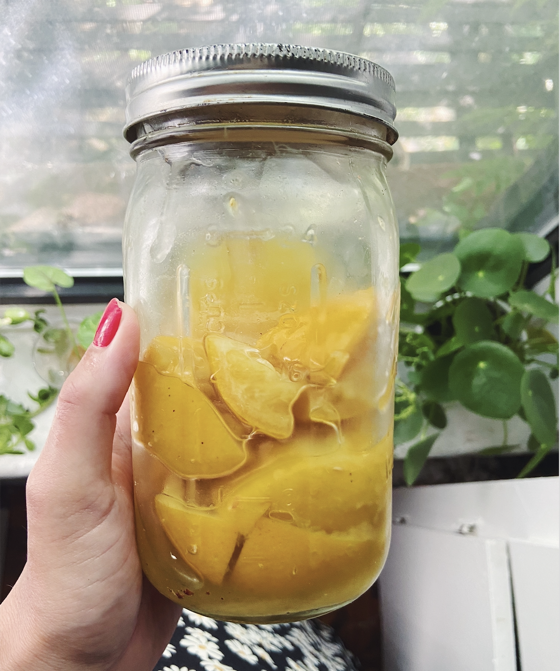 1. Combine preserved lemon, garlic and a few dashes of fish sauce in a large bowl. Add the juice of ½ a lemon and let sit a minute or two.