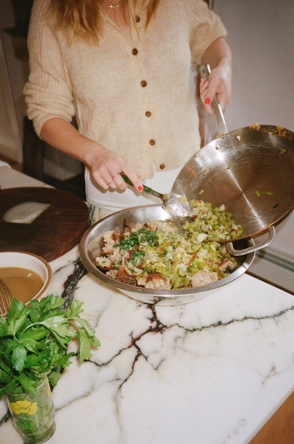 DO AHEAD: Stuffing can be made all the way until the final bake a day or two beforehand, but honestly will likely take up too much space in the fridge and you’re better off doing it the day of.