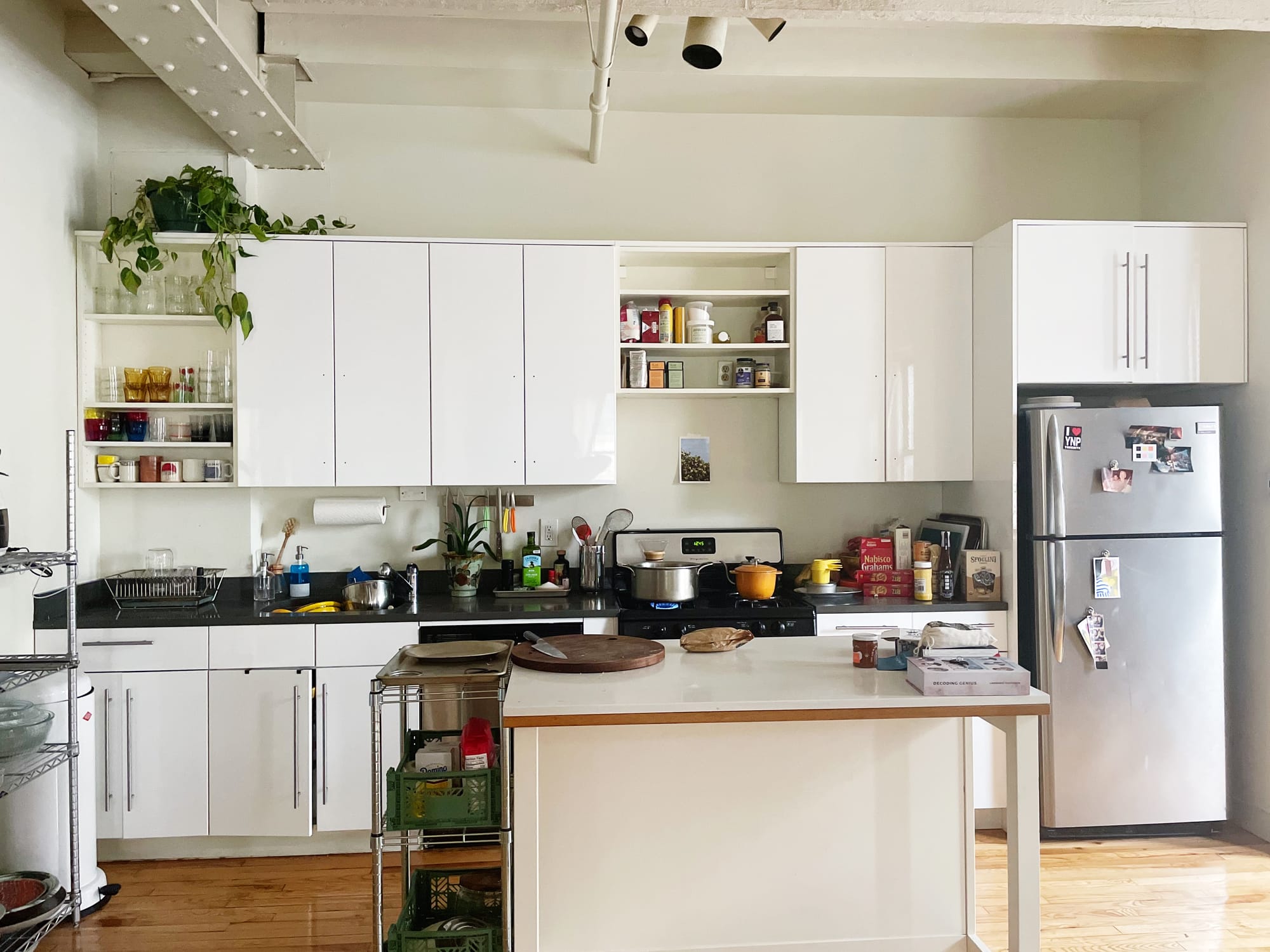 I fantasized about doing this nearly every day-- I was never that comfortable with the “new” fixtures of this otherwise old-feeling and absolutely dreamy apartment. The clean-looking cabinetry is there to hide the mess, sure, but also hide the things that make me, me. The half-used jars of coconut oil and ghee next to the popcorn and nutritional yeast, the scratched-up melamine bowls courtesy of my insomnia-fueled Etsy purchases. The glasses I spent too much money on but enjoy drinking my water from as it really elevates the experience, the stacked measuring cups, the mismatched plates, the 82 different types of beans. I love to expose those things, proud to have them on display despite the chaos and disorder and disfunction they may belie. Oh god-- I’m using the cabinets as a metaphor for myself and I am sorry!