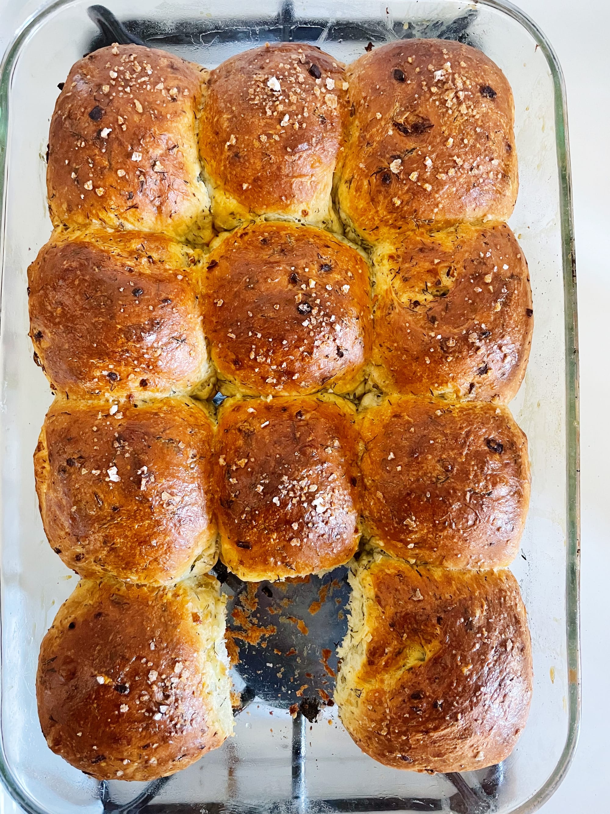 9. Remove from heat and let cool slightly. These rolls really are best eaten the day of, but can be rewarmed in the oven or eaten at room temperature or whatever honestly who cares, they’re rolls filled with butter and dill, they’re perfect whenever.